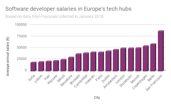 Chart Average Software Developer Salaries In Europe S Tech Hubs Sifted